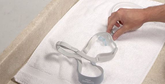 Importante! Nunca utilize nenhum tipo de álcool ou solução de limpeza na sua máscara, nas almofadas nasais ou nos tubos. Isso pode danificá-los. Use somente água morna com sabão.